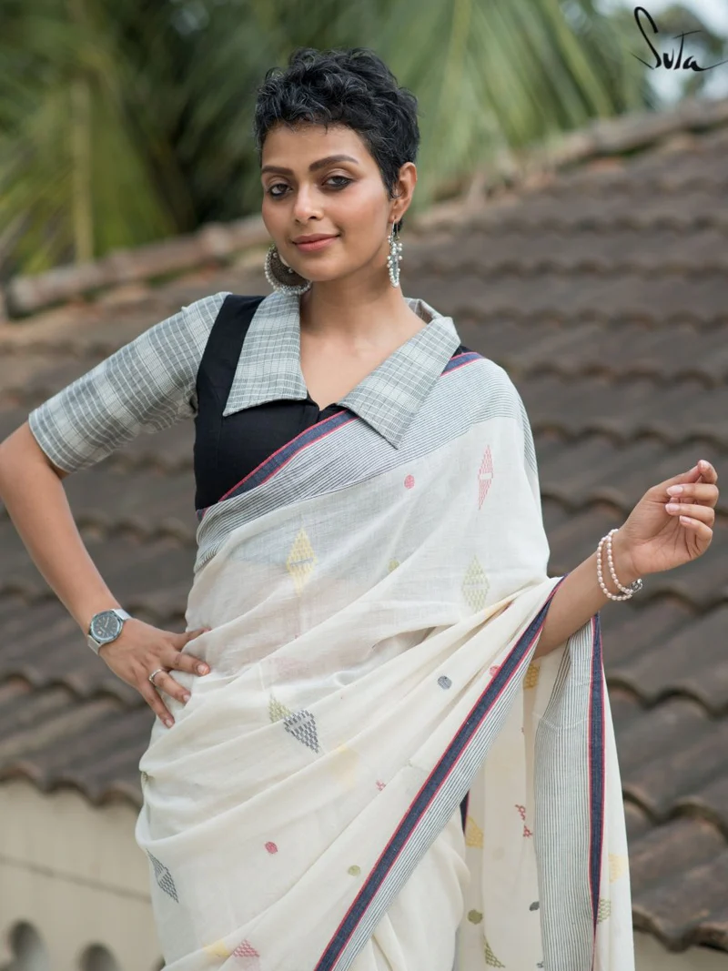 Malika x Rozaana | Deep Neck Saree Blouse in Ecru Beige Linen