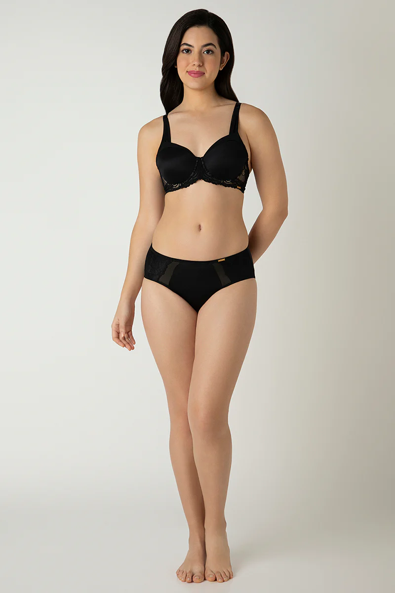 Home Bra Padded Bra BLACK Glam Lace Padded Wired Balconette Bra