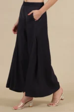 Black Solid Flared Rayon Palazzo With Pleats
