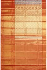 Blue Kanchipuram Silk Saree with Floral Zari and Red Pallu Regular price