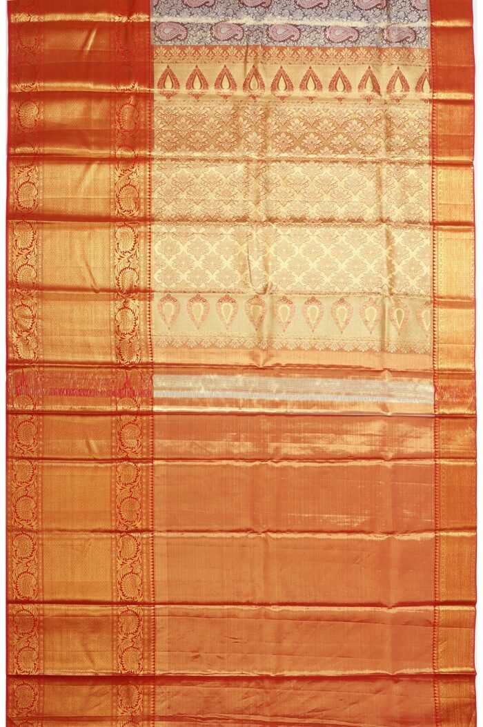 Gold Kanchipuram Silk Saree with Floral Design and Sea Green Border ₹20,000.00