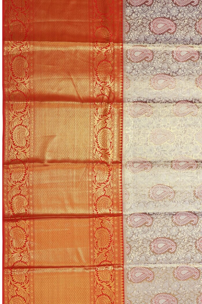 Blue Kanchipuram Silk Saree with Floral Zari and Red Pallu Regular price