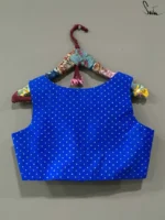Blue Silk Sleeveless V Neck Benarasi Blouse