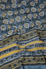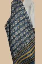 Home Dupatta Deep Blue with Florals Block Printed Mul Cotton Dupatta