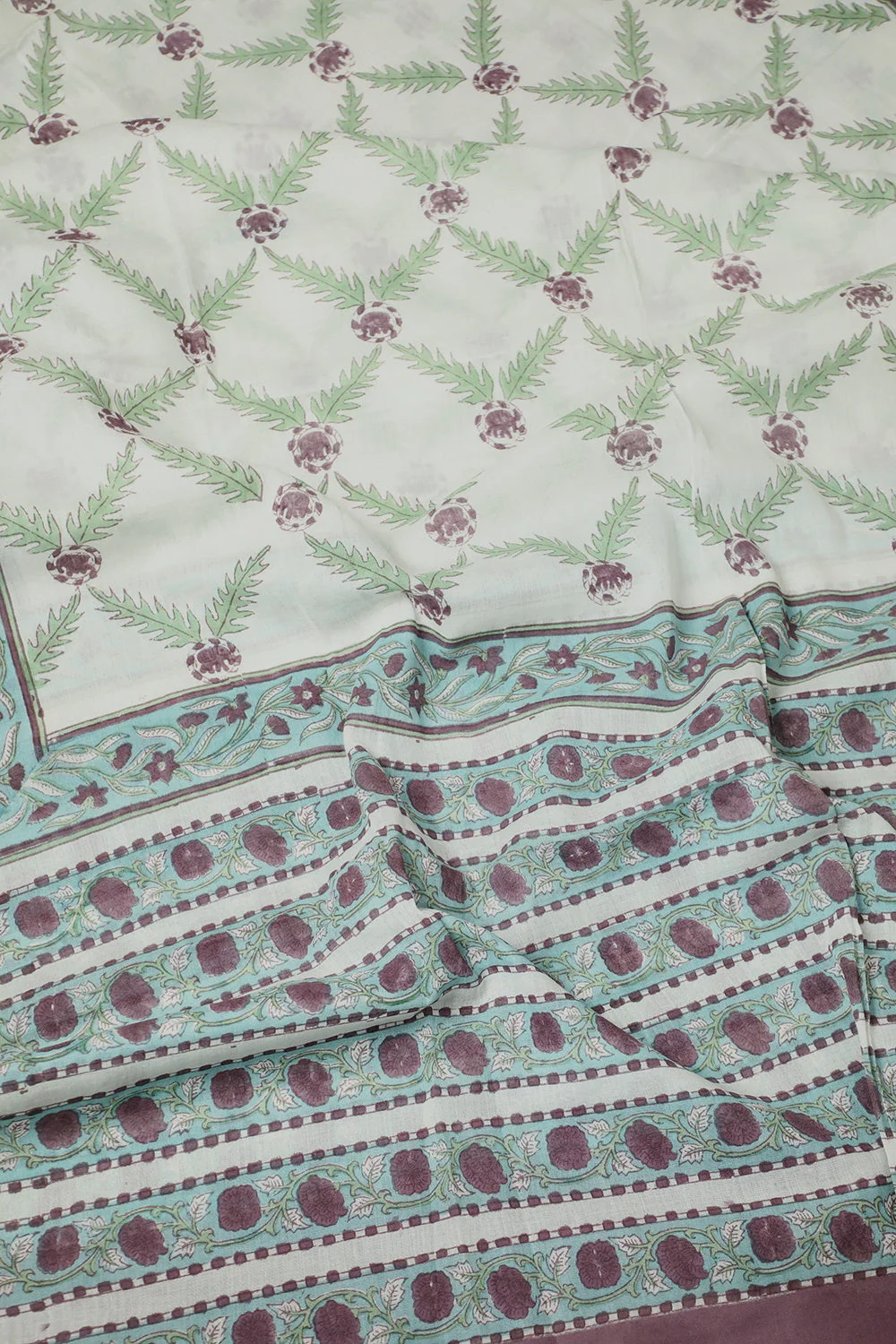 Home Dupatta Floral Pattern on Cream Block Printed Mul Cotton Dupatta