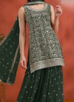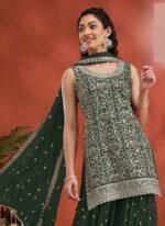 - Ideal for festive events such as Diwali, Eid, and weddings, this green embroidered palazzo set brings together modern style and traditional richness. Pair it with golden earrings and heels to complete a radiant look that exudes confidence, elegance, and timeless celebration.