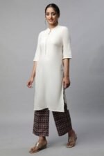 Co-ord set for women in airy white seer sucker fabric, this variation offers the same blend of elegance and comfort with a distinct finish. The kurta, designed with a modern silhouette, is paired with matching pants for a clean and minimal look. Ideal for casual outings, festive brunches, or small family gatherings, it is versatile and lightweight. The breathable texture of seer sucker ensures all-day comfort, especially in warm weather. Its timeless white shade allows for endless accessorizing, whether with bold jewelry or subtle accents. This co-ord set is a wardrobe staple that balances simplicity with elegance, making it perfect for women who love modern ethnic dressing.