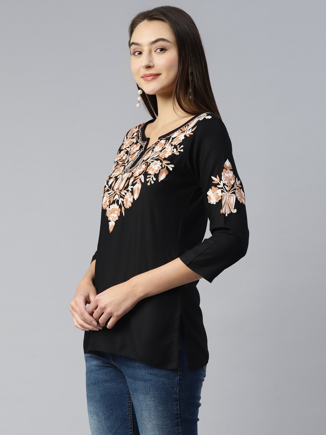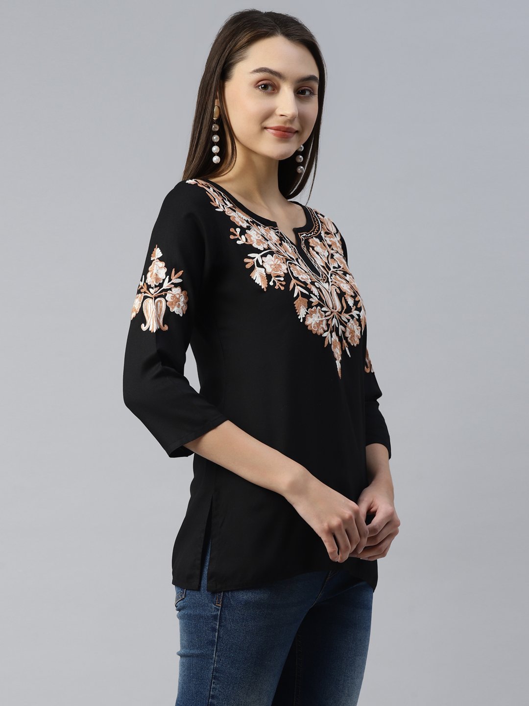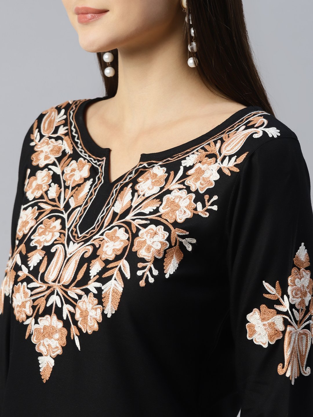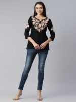 Black Pashmina Work Short Kurti