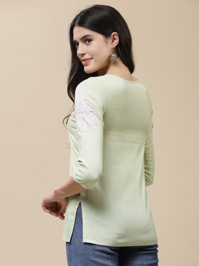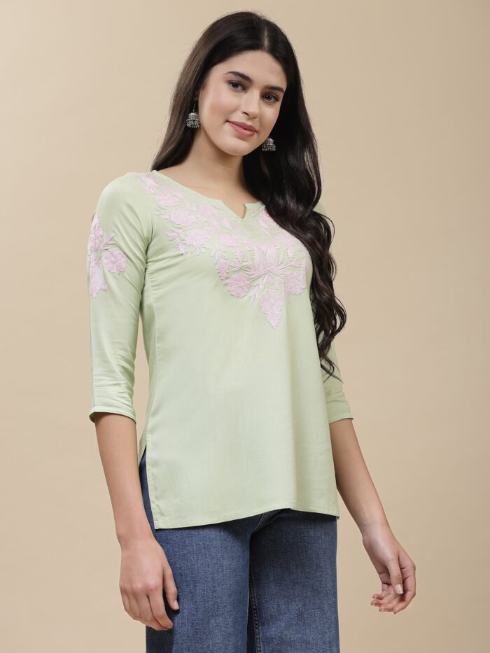 Home Short Kurtis Heer Kashmiri Pastel Green Kurti