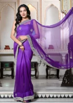 Drape this Kareena Chiffon Saree with elegance along with your favourite jewelry to showcase your uniqueness, hand-kardana work, and Mirror Work.