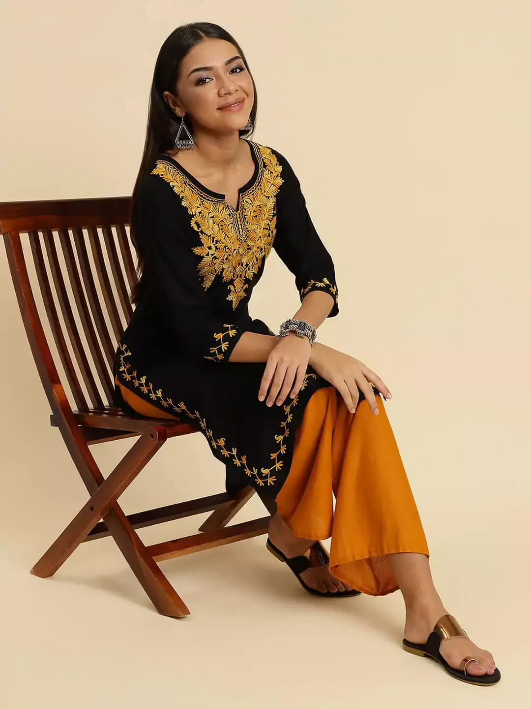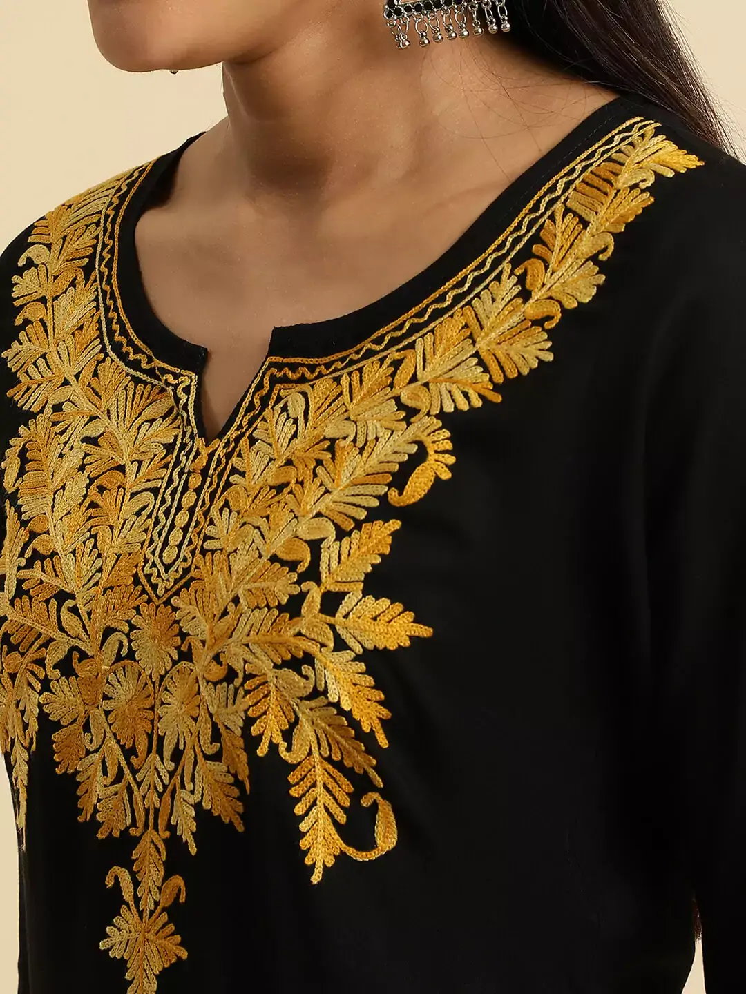 Home Kurtis Long Kurtis Kashmiri Black Kurti