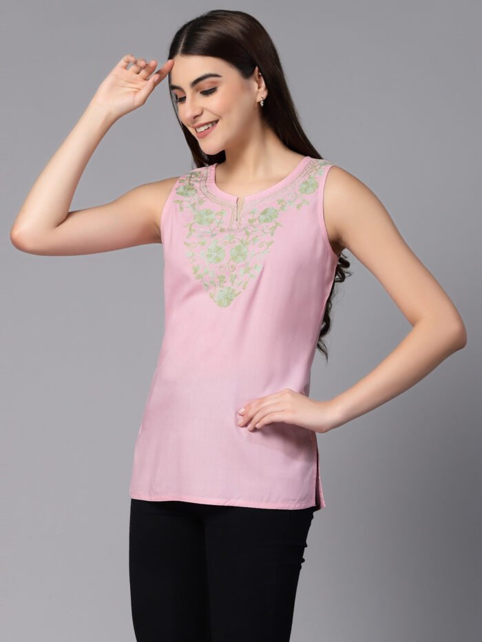 Home Short Kurtis Nadia Kashmiri Light Pink Sleeveless Kurti