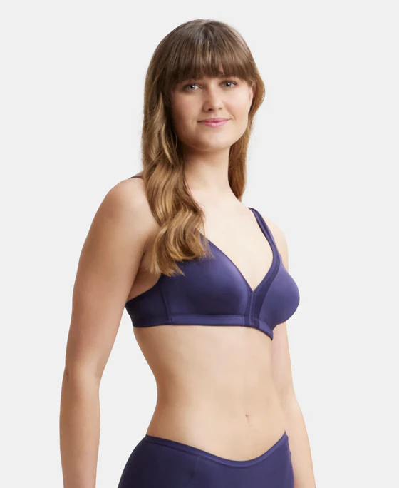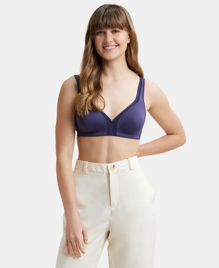 Non Padded Soft Touch Microfiber Elastane Stretch Full Coverage Everyday Bra with Stylized Mesh Panel