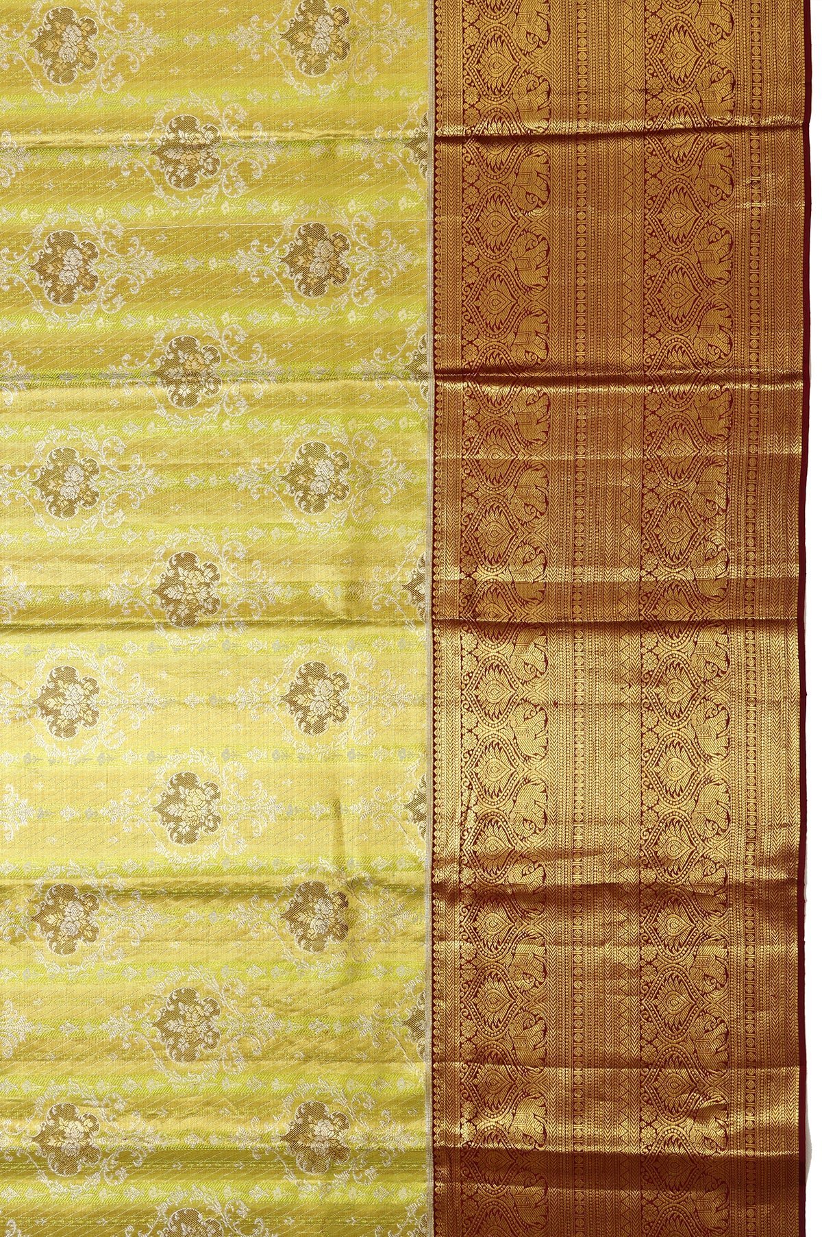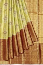 Home Saree Occasions Wedding Sarees Parrot Green Kanchipuram Tissue Silk Saree