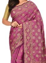 This brilliant array will make you the ultimate classic beauty at the next event you attend. You are sure to make a strong fashion statement with this pink silk designer kancheepuram traditional saree. This ravishing attire is amazingly embroidered with weaving work. Comes with matching Beige blouse.