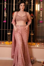 Elegantly crafted with intricate schiffli embroidery, this lightweight palazzo offers a perfect blend of comfort and style. The silhouette is designed for effortless movement, along with two side pockets, making it a versatile addition to both casual and formal wardrobes. Ideal for adding a touch of traditional charm with modern flair.