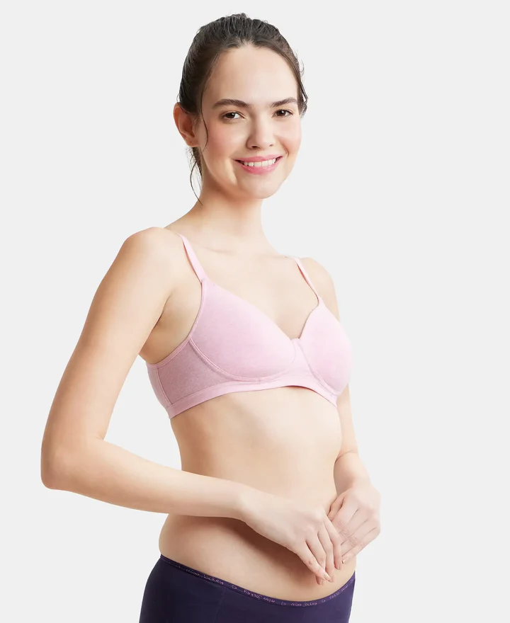 Pink Lady Melange Wire free Padded Super Combed Cotton Elastane Stretch Full Coverage Bra