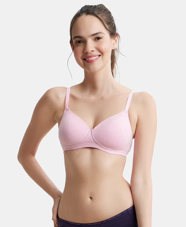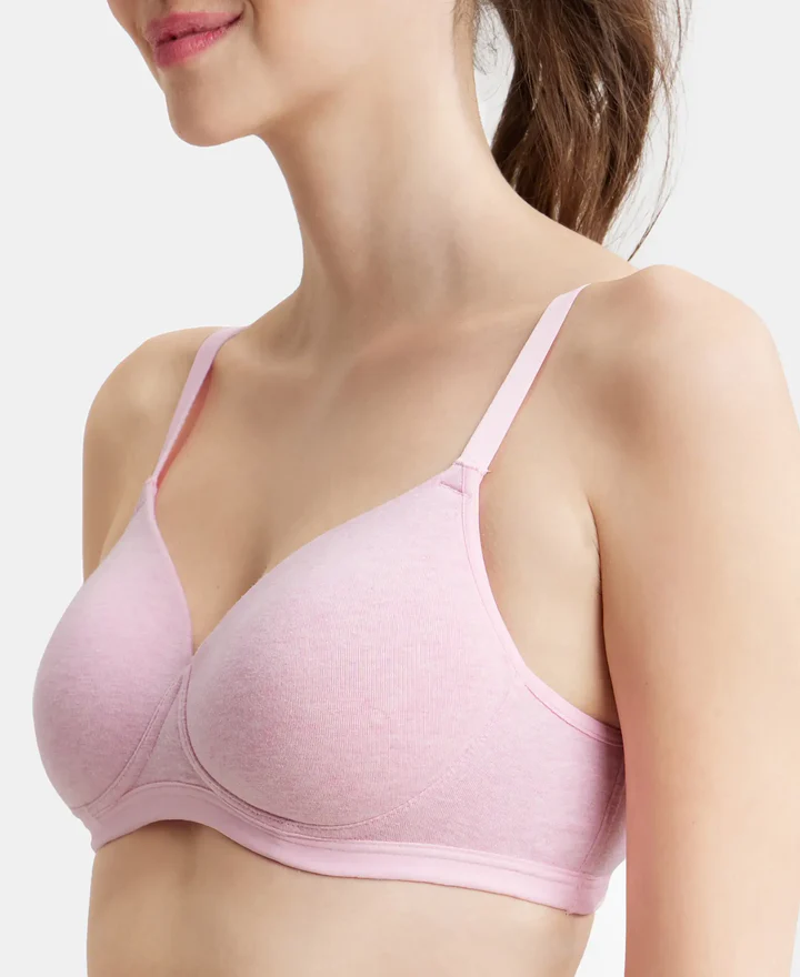 Home Bra Padded Bra Pink Lady Melange Wire free Padded Super Combed Cotton Elastane Stretch Full Coverage Bra