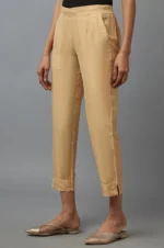 Home Palazzos & Pants Palazzos Regular Fit Solid Straight Fit Woven Trousers With Elasticated Waistband