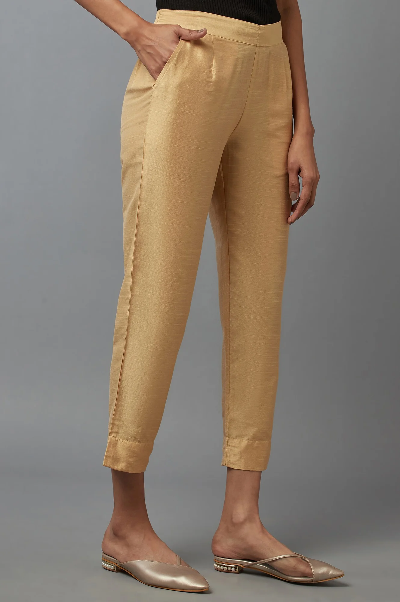 Silver Woven Trousers With Elasticated Waistband ₹800.00