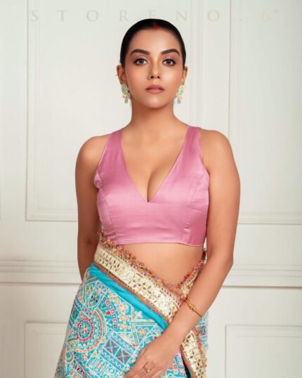 Rani Pink Sleeveless FlexiFi Saree Blouse with Plunging Neckline and Back Cut Out