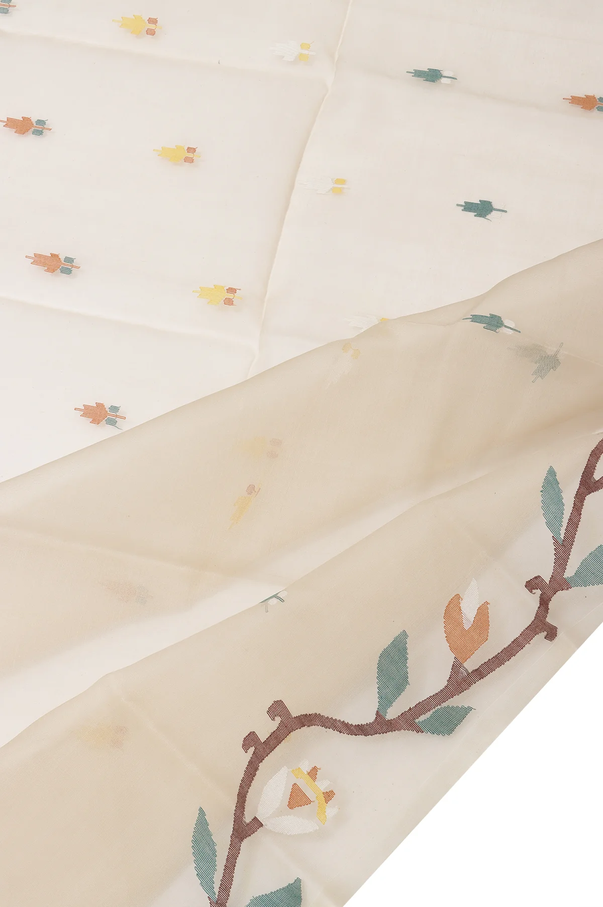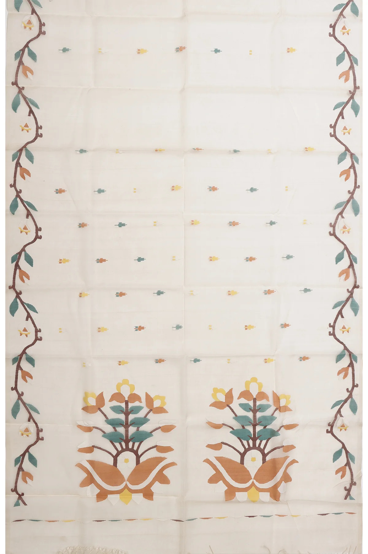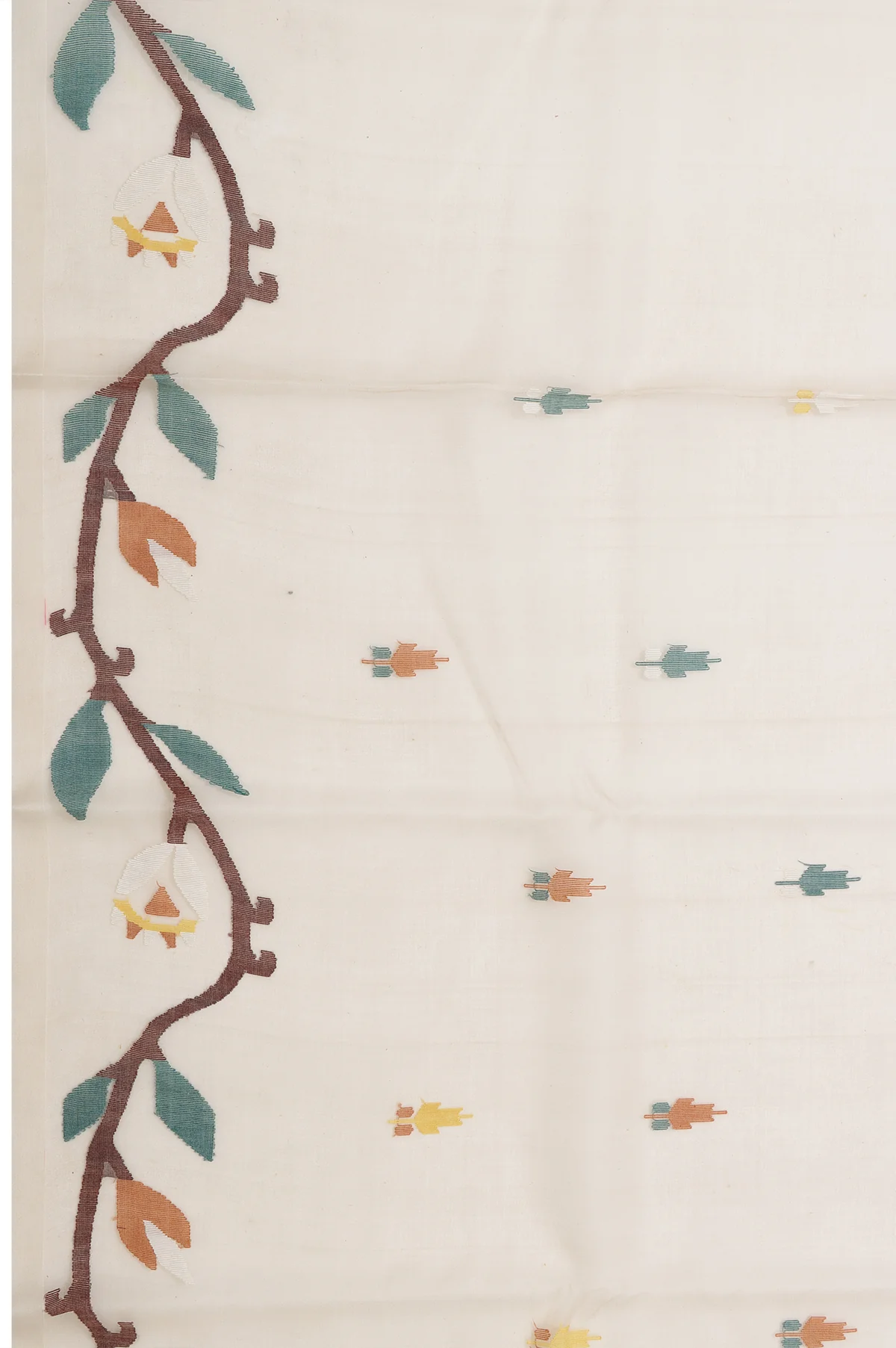 Plain Beige Bengal Cotton Saree with Sea Blue Border ₹5,000.00