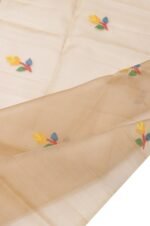 Plain Beige Bengal Cotton Saree with Sea Blue Border ₹5,000.00