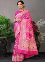 Soft Silk Dark Pink Color Zari Work Saree Festive Wear