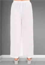 Elegantly crafted with intricate schiffli embroidery, this lightweight palazzo offers a perfect blend of comfort and style. The silhouette is designed for effortless movement, along with two side pockets, making it a versatile addition to both casual and formal wardrobes. Ideal for adding a touch of traditional charm with modern flair.
