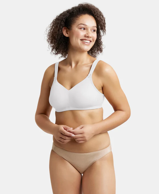 White Non Padded Soft Touch Microfiber Elastane Stretch Full Coverage Minimizer Bra