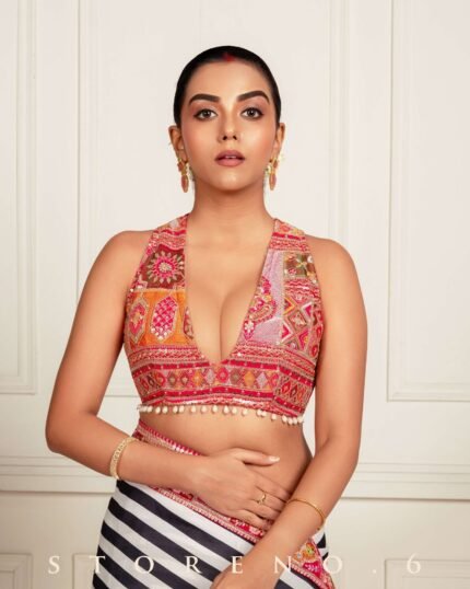 Erum x Rozaana | Elbow Sleeves Saree Blouse in Sea Pink