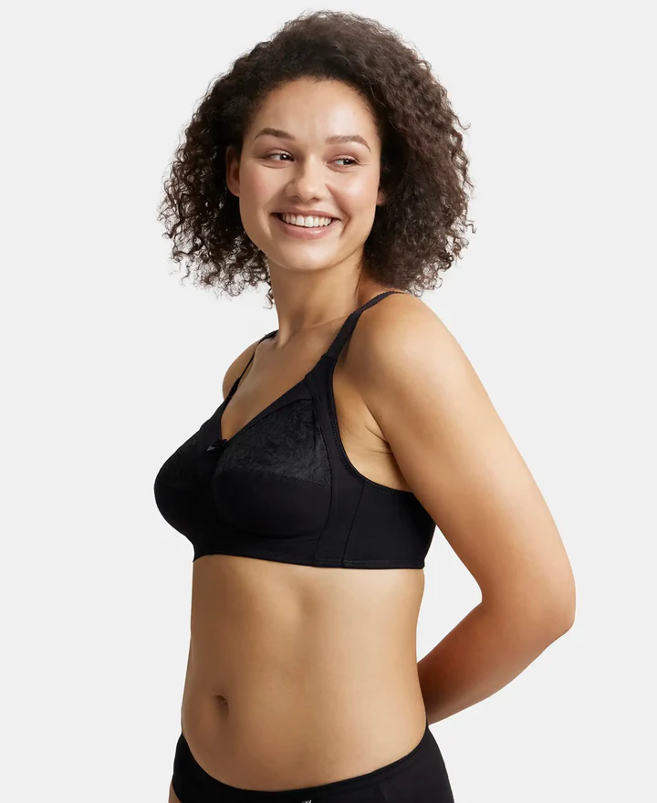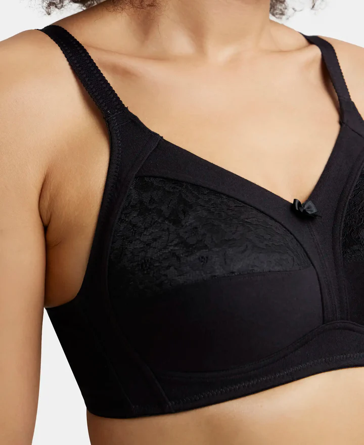 Wire free Non Padded Super Combed Cotton Elastane Stretch Full Coverage Plus Size Bra with Lace Styling