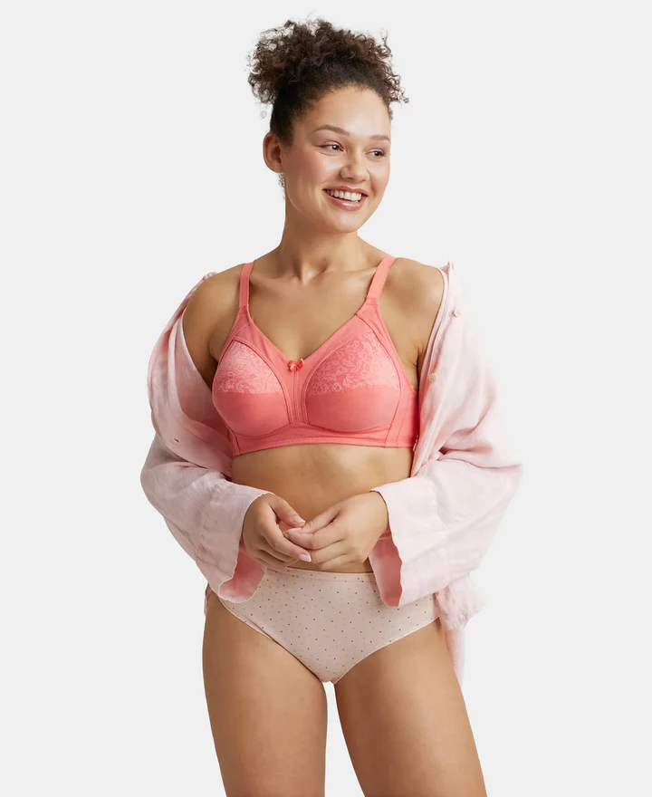 Home Bra Non Padded Bra Wire free Non Padded Super Combed Cotton Elastane Stretch Full Coverage Plus Size Bra with Lace Styling