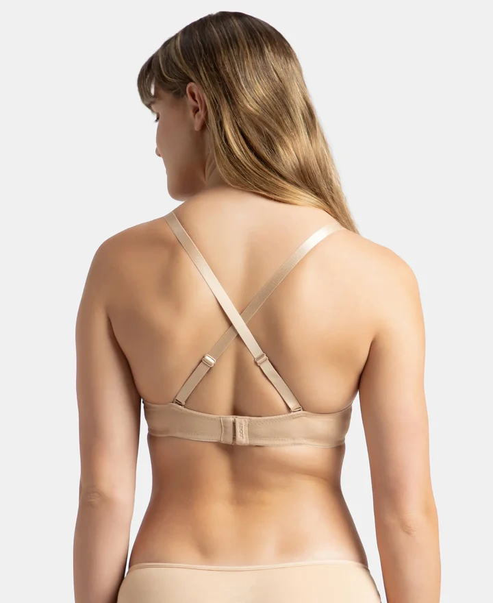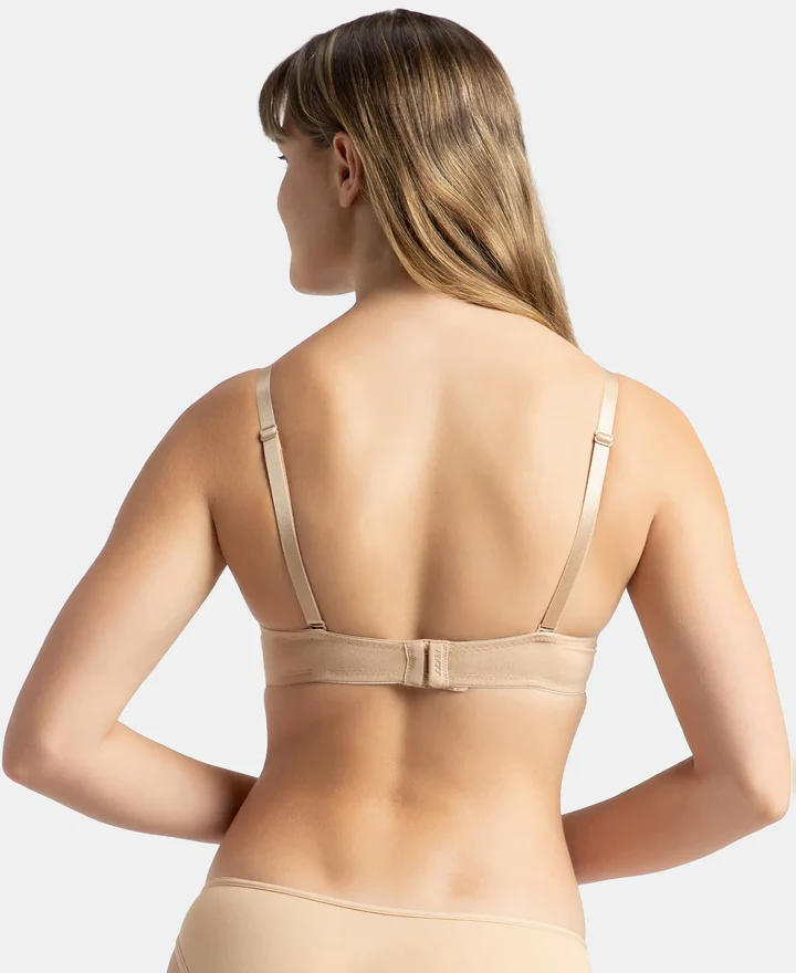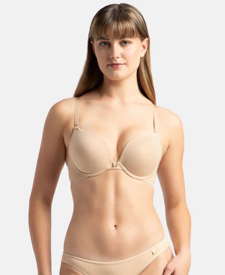 Wired Padded Super Combed Cotton Elastane Stretch Medium Coverage Pushup Bra with Plunge Neck