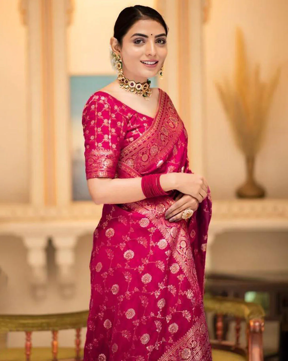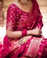 - The last image gives a detailed look of the blouse piece that comes with this saree (The model is wearing a blouse from our in-house wardrobe)
